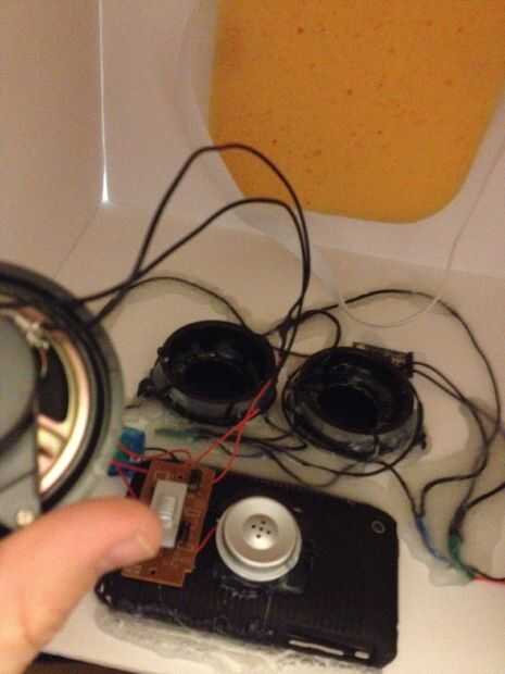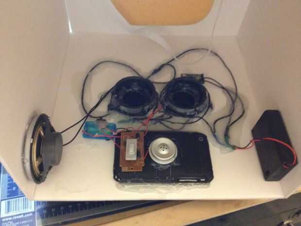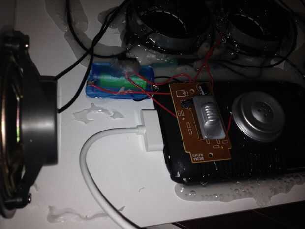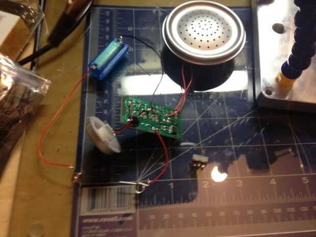 Una vez que todo ese trabajo, empecé a caliente pegue todo en su lugar. Empecé con el micrófono, colocándolo en la caja del teléfono donde estaría la boca. El resto de los componentes se colocan en relación con la longitud del cable que fue uniéndolas entre sí. La batería tiene montada un poco por encima el teléfono, la tarjeta con el interruptor de ajuste de voz fue colocada justo al lado del micrófono y luego altavoz primero fue colocado justo al lado del teléfono, pero antes de que el pegamento se seca totalmente, me di cuenta que tenía razón en el camino los teléfonos puerto de carga. Yo rápido levantado el altavoz antes de que el pegamento completamente y luego tuvo que encontrar un lugar nuevo para él.