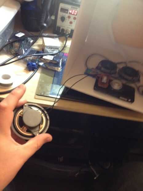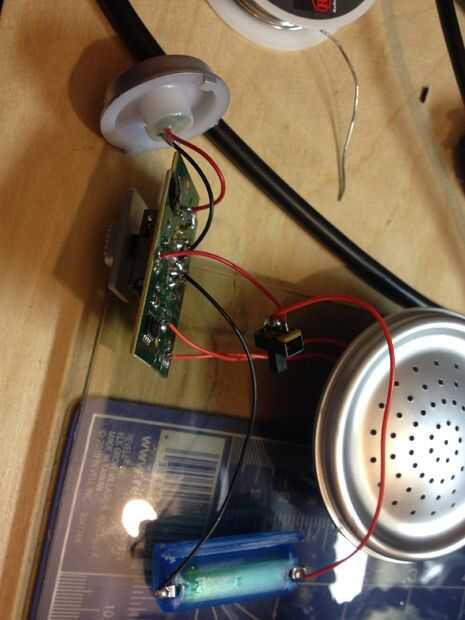 Puesto que los cables eran bastante cortos, terminé tener que añadir algunos alambres de extensión para el altavoz y luego coloque el altavoz en la pared hacia fuera el lado de la máscara. Estaba preocupada, esto podría hacer que la voz cambiar demasiado extraño sonido (saliendo del lado en vez de la parte delantera) pero estaba bien. Todavía puede oír la voz de los portadores de la máscara, pero la voz electrónica agregada sólo le da una pequeña patada extra.