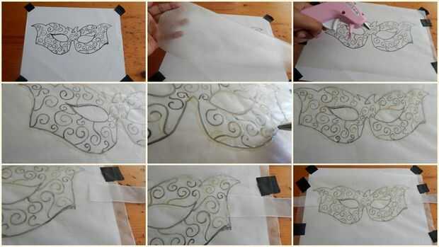 Ahora traza el bosquejo negro con pistola de pegamento caliente. Asegúrese de que usted trazó las líneas y curvas.