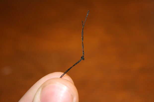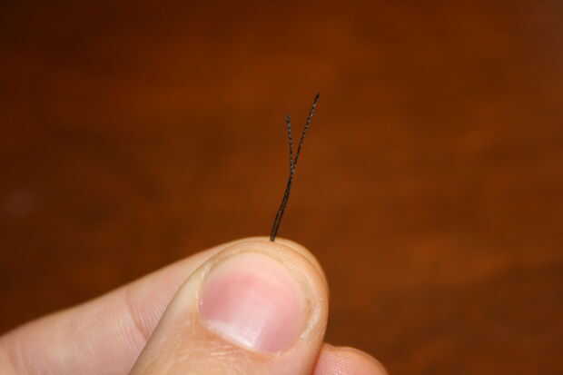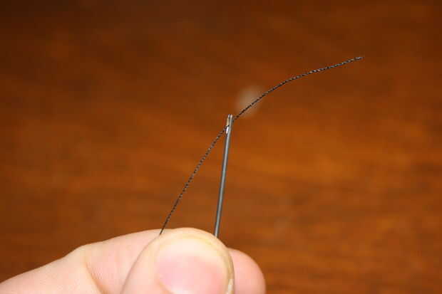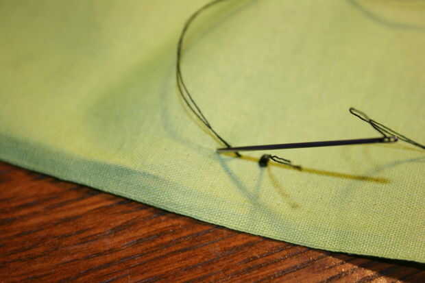 Para empezar, meter el extremo de su hilo por el ojo de su aguja. Tire de una longitud razonable de hilo por el ojo. Desentrañar suficiente hilo de la bobina que hay longitudes juego libre de ambos lados del ojo del hilo y cortar.