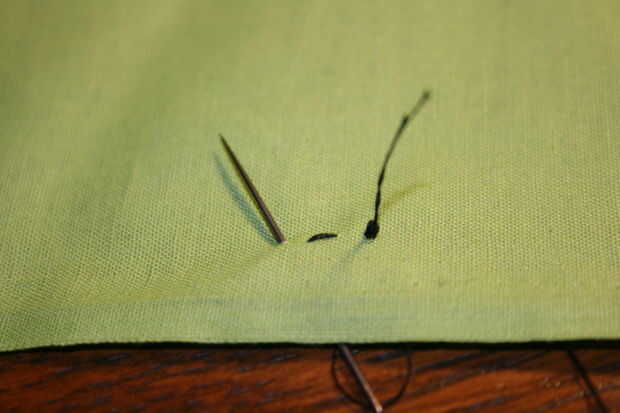 Cuando usted cose debe tener una línea que sigues, ya sea visiblemente dibujado sobre la tela o simplemente imaginado. Para realizar una puntada corriente, comience en un extremo de esta línea y empujar la aguja a través de la tela y por el otro lado y tire firmemente. Ahora busquen un lugar más abajo de la línea y empujar la aguja a través de la parte inferior. Tire del hilo todo el camino y debería tener una completa puntada. Continuar por la línea, tratando de mantener el espaciado incluso.