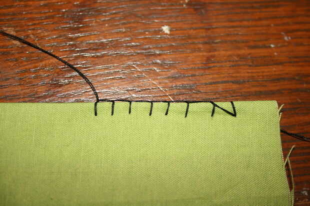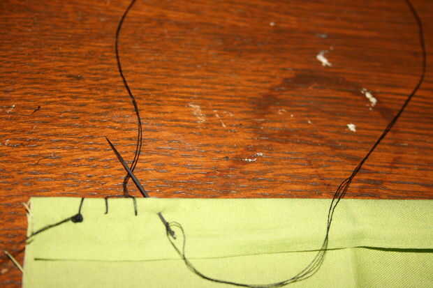 Si usted repite este patrón que usted debe terminar con hilo tendido en la parte superior del doblez, a su largo, así como varios, espaciados uniformemente hilos perpendiculares al borde.