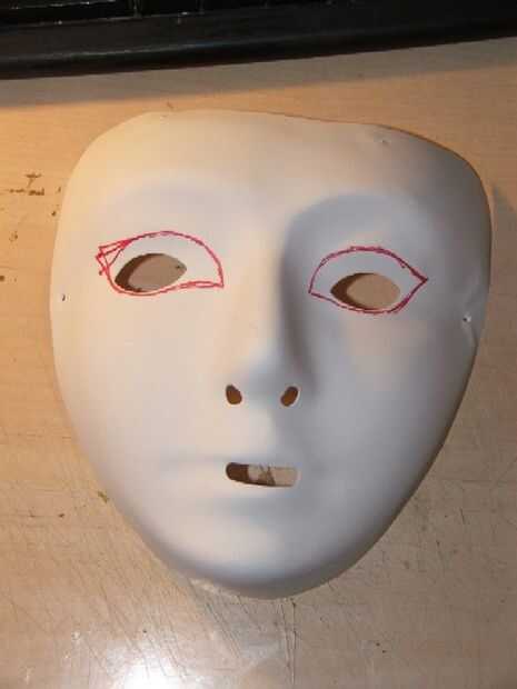 Aquí le damos la máscara básica. Yo he marcado los mejores taladros de ojo con un rotulador.