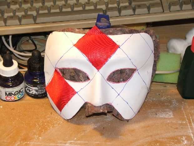 La máscara se ha recortado a la forma y un patrón del diamante ha sido dibujado rotulador.