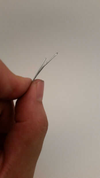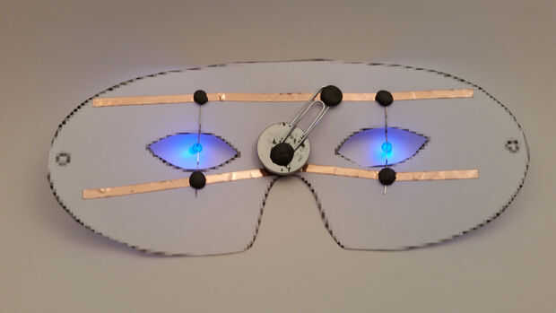 Ayuda si usted dobla el clip un poco más, para que el clip puede tocar el papel y la tapa de la batería al mismo tiempo. Tenga cuidado de no dejar ninguna parte de la presilla sobresale muy lejos, ya que podrían empujar el ojo. Pegar una pelotilla Conductak todo en el lado negativo de la batería de botón. Reducir a la mitad el último sedimento Conductak y una pieza para pegar el clip en el lado positivo de la batería de botón. Encontrar una posición donde usted puede pegar el lado negativo de la batería se tira una cinta y el clip puede tocar otro. Pega la pila a la tira de la cinta, luego use el Conductak sobra para pegar el extremo libre de la presilla a la tira de la cinta. Usted puede poner la batería dondequiera que usted desea, como la polaridad coincide con los LED y la batería y clip alcanzará tanto cobre tiras de cinta de papel. ¿Más flexibles que el método 1, pero solo no se ven tan bonito, correcto?