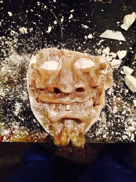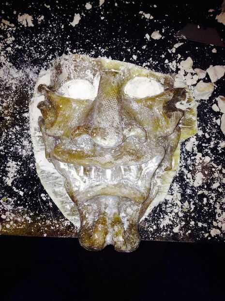 Después de dejarlo secar y curar para 24 tiro horas en el molde. Están pueden ser un yeso que se ha pegado a la mascarilla, así que usando archivos y cepillos de alambre para limpiar para arriba.