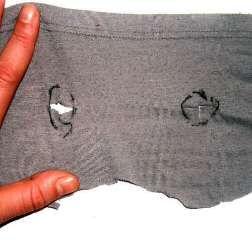 Orificio de su exterior ojo-un poco más pequeño que el de la máscara de ojo porque se estira el material externo para hacer una abertura más grande cuando estás sewing.* **