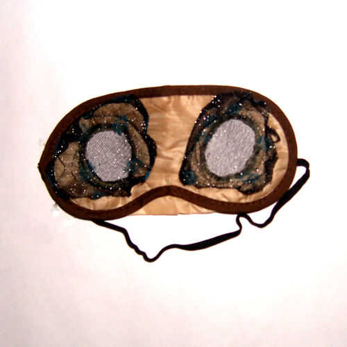 Alineación de las tres capas y los alfileres juntos es importante y complicado. Es más fácil coser el nylon en su lugar antes de prender el material externo. Con la incertidumbre ya cosidos material nylon, trate de asegurarse de que los agujeros de la parte externa del ojo coincidan con los agujeros del ojo de la máscara de ojo por la sensación. A continuación, metidos los bordes bajo y cubrió todas las capas juntas. Después de fijar firmemente alrededor de los bordes cosí la frontera con cerca de 1/2 pulgada del borde.
