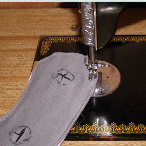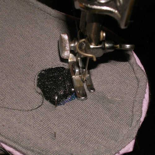 Esperemos que su ojo orificios alineen al menos algo, mina no perfecto, pero no demasiado grande de un acuerdo. A pesar de todo, cubrió cada una de las cuatro aletas del agujero del ojo gris bajo la tela gris para hacer los agujeros del ojo de outter. Tenga especial cuidado al coser los agujeros del ojo para llegar muy cerca del borde del material gris, pero no te lo pierdas.