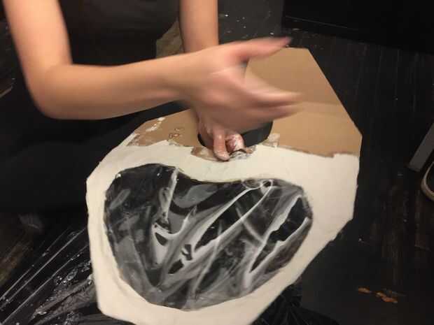 Utilizando el papel maché, cubrir el mazo entero y sellar el depósito de agua a la pieza del pecho