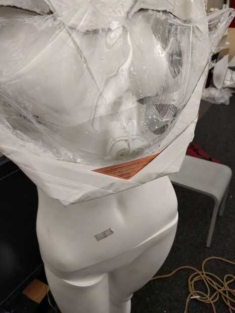 primer paso es conseguir viejo cartón y cortarlo en tiras y pedacitos de su elección. Los más pequeños se cortan, el detalle más es posible añadir a la forma general. Empezar por la cola una banda alrededor de su cabeza para adaptarse a sus dimension