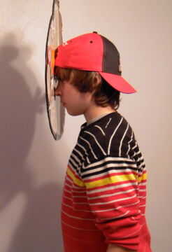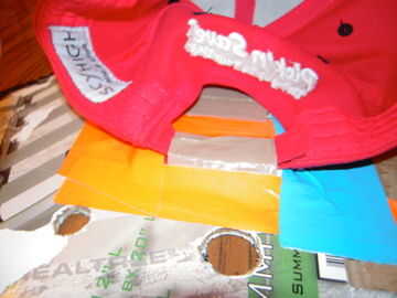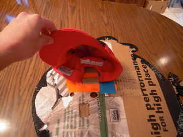 Hacer un borde con el negro, envolviéndolo alrededor del borde. Luego rellenar con sus otros colores. Puede ayudar a localizar las partes internas en algún plástico (funciona un zip-loc) y luego transferirlos a la cinta. Ahora es sólo cuestión de colocar las piezas y el ajuste fino que les corresponde. Como un rompecabezas. Para sujetarla a la cabeza, tomar un barato (preferiblemente color coordinado) béisbol la tapa y fíjela con cinta adhesiva. Asegúrese de que el sombrero es para caber firmemente en su cabeza antes de que la cinta. Esta mascarilla es más pesada a la derecha (su izquierda), por lo que quiere que todo sea muy apretado para que no se incline.