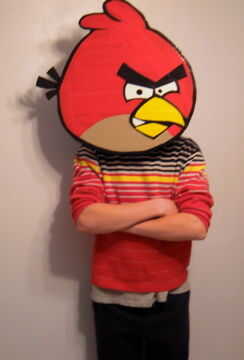 Y hay que ir. Un barato, fácil de hacer Angry Birds máscara. Sólo use una camisa de color correspondiente y unos pantalones cómodos y eso es todo. Gracias por leer, recuerden votar, y... FELIZ HALLOWEEN!!!
