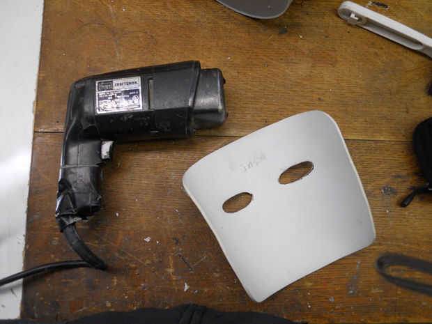 • Se utilizó una pistola de calor para recalentar las áreas para que sean jugables para poder darle forma. Un cubo de yeso pequeño pasó a ser del tamaño correcto e hizo solo el truco para formar la placa de plástico en la forma de aproximado requerida.