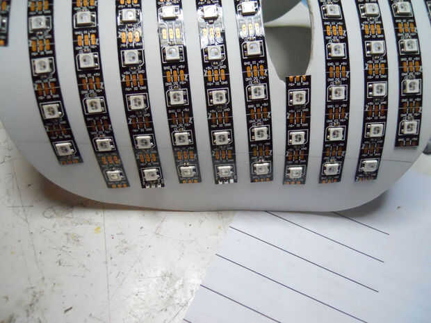 - Aplica toda la tira de LED, manteniéndola recta y ordenada. La Faja es controlada uni-directionaly, así que asegúrese de que los extremos (y caras) estén colocados correctamente.