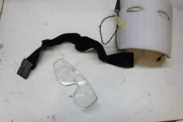 Las correas y montaje: Al parecer la parte más difícil fue conseguir que encajarán bien. Una cinta de la cabeza de una vieja máscara de paintball fue utilizada para la celebración de la máscara de y se agregaron algunos bloques de espuma para mayor comodidad y para el posicionamiento. Se encontró que añadiendo un trozo de espuma en el área de frente hacía más cómodo, como la tensión de la correa haría el pivote de la máscara de la frente que lo guardó de frotamiento en la cara/barbilla. En general su bastante cómodo, todas las cosas consideran.