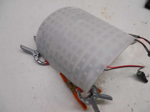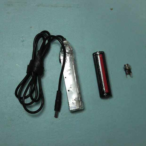 - El soporte de la batería que se muestra es hecho de un pedazo de tubo cuadrado de aluminio fino, que se formó en un soporte para una 18650 utilizando algunos shapelock plástico y alambre.