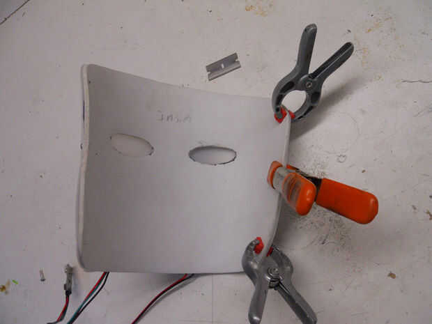 - Lo volcó y utiliza una cuchilla de afeitar y la placa frontal como guía. Luego recortan el polietileno de alta densidad y célula al ras de la espuma a los bordes de la placa frontal.