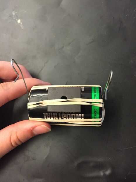 Colocar el imán sobre la batería directamente. Puede que desee engancharlo por debajo de uno de los elásticos para ayudar a estancia en lugar mejor.