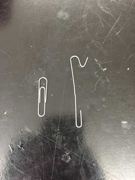 Tienes que doblar hacia afuera el bucle interno del clip de papel.
