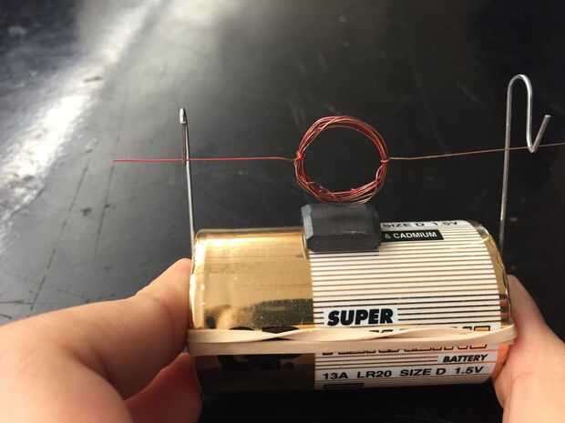 Cuando la batería está configurada con los clips de pie y actuar como un gancho, coloque el cable en espiral en la parte superior para que los extremos descansan en el buzamiento de la clip y que quede uniforme. Entonces, añada el imán directamente bajo el aro para que quede encima de la batería.