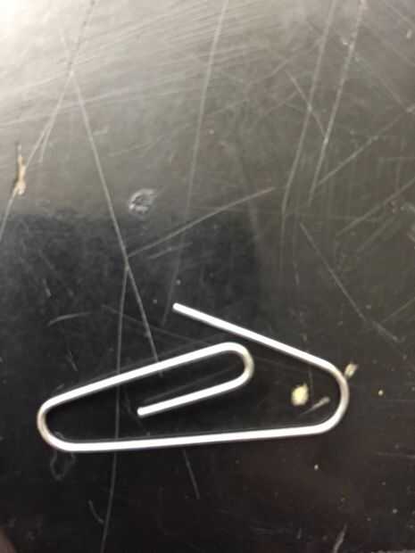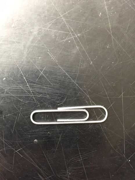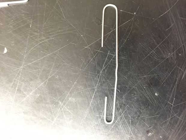 Dejar de lado la bobina circular y tomar dos clips. Tomar el clip de papel y desplegarlo en forma de C.