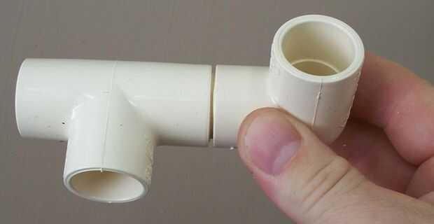 Luego pegar los codos comunes como se muestra en el paso 3 para hacer todas las esquinas de la parte superior e inferior de la perrera.  Asegúrese que los extremos abiertos estén en ángulo recto entre sí.  Usamos un bloque de madera o una escuadra.  Usted debe ser rápido porque el pegamento del PVC se seca muy rápido.