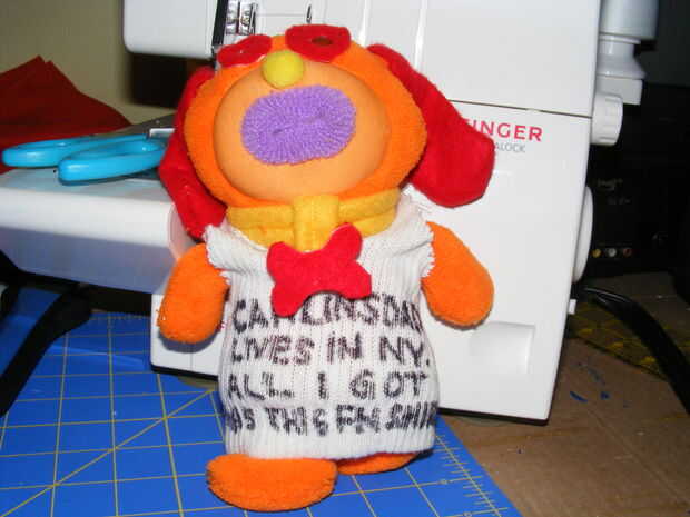 Hackear un peluche (se trata de un juguete Sing-A-Ma-Jig con voz fría) para que parezca impresionante botín obtenible sólo por ganar un concurso de Instructables impresionante o algo. Sí, hay toda una línea de Instructables temática productos esperando a ser descubierta... o necesidad de pasan los requisitos de seguridad y ser juzgados en el buen gusto de las masas.