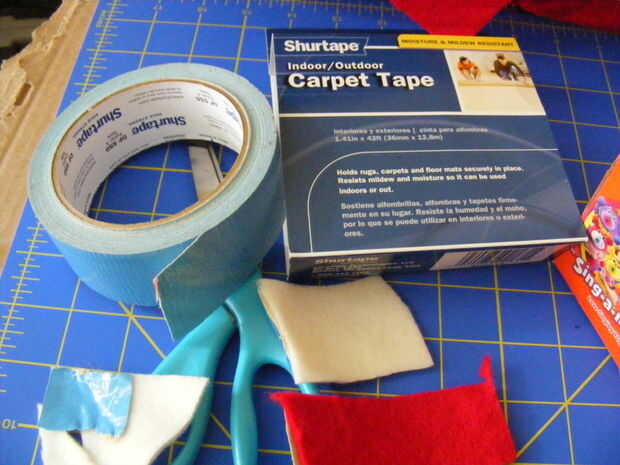 Cinta de doble cara - prefiero utilizar cinta doble cara moqueta, más pegajoso que el regular cinta de doble cara y usted no tiene que lidiar con la pistola de pegamento caliente u otros líquidos adhesivos.