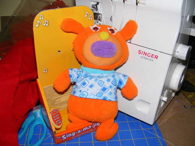 He encontrado esta cool "animatronic" peluche que canta o habla al presionar su barriga. Es un juguete de Sing-a-ma-jig que parecen ser vertido en las mejores tiendas de descuento hoy en día. Tiene una canción programada que puede cantar o a decir otras sílabas al azar.