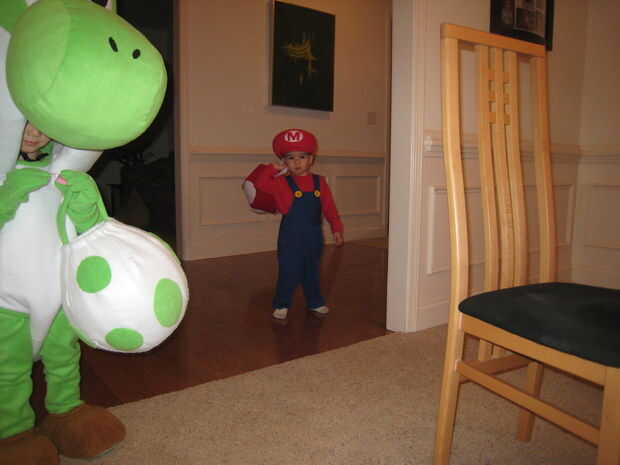 Con Yoshi que íbamos a hacer que su hermano pequeño es bebé Mario. Realmente mi más viejo quería que su hermano pequeño que Luigi (supongo que porque el pequeñín tiene un peluche Luigi mientras que él tiene un Mario), pero que poco gusto mucho la idea de ser Mario.