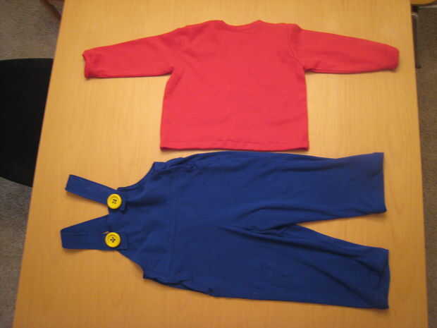 Sé que un pañal hubiera sido un traje más apropiado (es decir la isla de Yoshi), pero no quiero enviar a mi hijo en Halloween con sólo un pañal. Así que decidí ir con el mono y la camisa, a menos el bigote.
