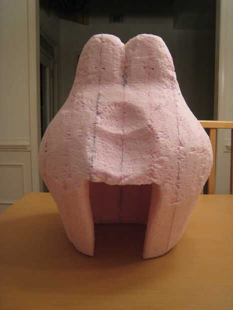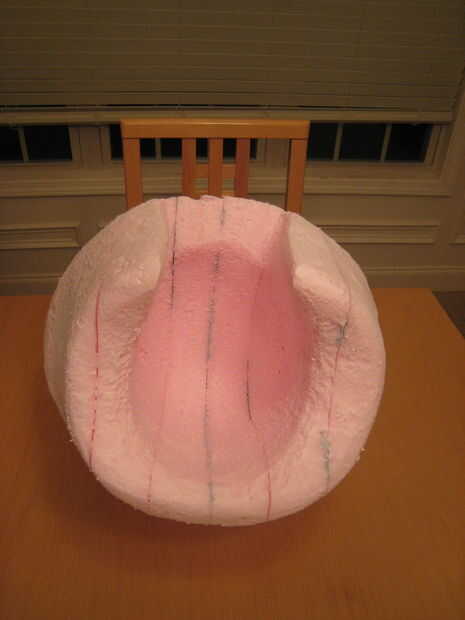 También tallado un lugar para la cabeza ir. Lo hice usando el serrucho para cortar el agujero básico utilizando la lana de acero para refinar las formas. Esto le dio un casco casi como ajuste.