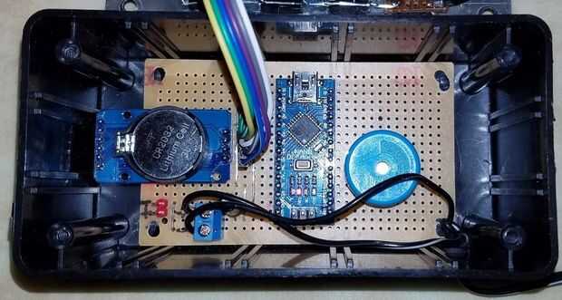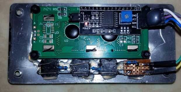 Es una buena idea utilizar un óhmetro para comprobar la construcción de la placa perforada. Compruebe que no haya cortocircuitos entre huellas positivas y negativas y que conecta a cada pin del Arduino con el componente correcto.