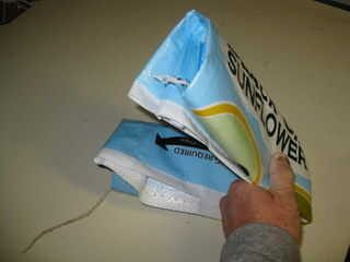 La bolsa vacía, que originalmente llevó a cabo 50# de semillas de girasol comenzó en aproximadamente 36 "x 22". Guata para arriba y relleno en la basura tomar un poco de espacio. Doblada y grabada es de 6 "x 5" x 3".