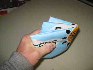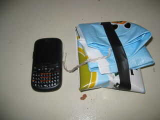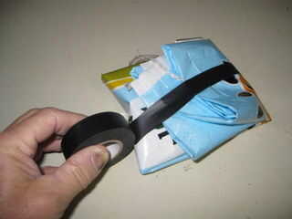 Apretar la bolsa doblada por lo que no hay lejos como doble el extremo derecho al extremo izquierdo. Doble la pila de nuevo y cinta en dos vueltas de cinta aislante.