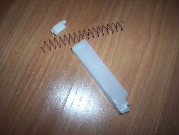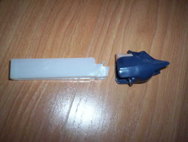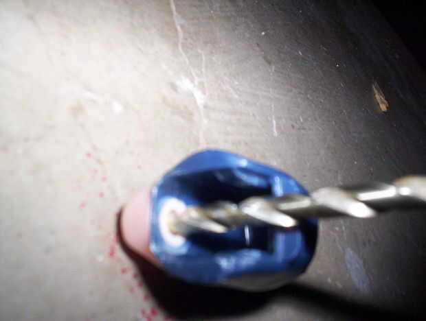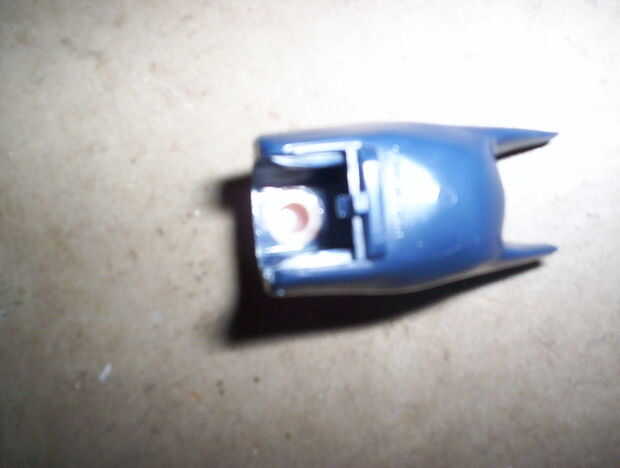 Para quitar el plástico interior, sólo abrirlo completamente y tire hasta que todo sale. Entonces, si usted tira y meneo la cabeza, aparecerá fuera de plástico blanco. Todo lo que necesitas es la cáscara externa y la cabeza. Para hacer un agujero para el LED, he utilizado una broca de 3/16 pulg. Perforado a través del agujero donde había un "remache" de plástico (ver fotos).