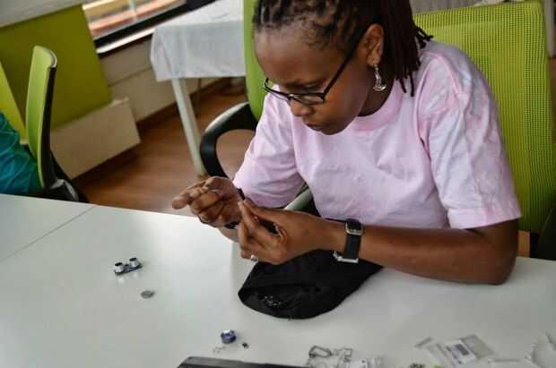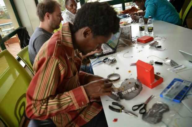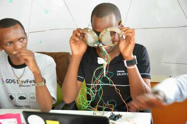 Nuestro gadget para el evento donde sensores de la gama ultrasónica, kits de LilyPad, arduino, zumbadores y cables desechados de viejos proyectos. Un equipo trabajado en tanques funky desarrollando para las personas con discapacidad visual. ¿Cómo funcionan? Bueno, tenían un sensor de gama colocado en el puente de uno de los tanques de C para detectar la cercanía a un obstáculo. Este sensor de ultrasonidos trabajó junto con un cristal de cerámica colocados en los extremos del templo que buzz siempre y objeto era demasiado cerca de la persona y alterar en este. Este equipo, conocido como 'Mashisho' - Swahili para gafas de sol - tenía un montón de diversión con este y nos entusiasma a rodar esto apagado como un producto de consumo auténtico al mercado keniata.