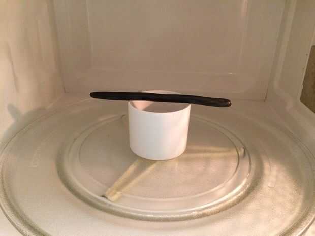 Tomar la varilla de carga susceptor PCL y colóquelo en el microondas. 10-20 segundos debe representar la mayoría del material flexible, aunque la colocación con respecto a los puntos individuales del microondas puede ocasionar variación en el material. Para abordar esto, normalmente coloco el material en el borde de la bandeja de descomposición para maximizar el número de potenciales puntos de acceso que atraviesa de una rotación determinada.