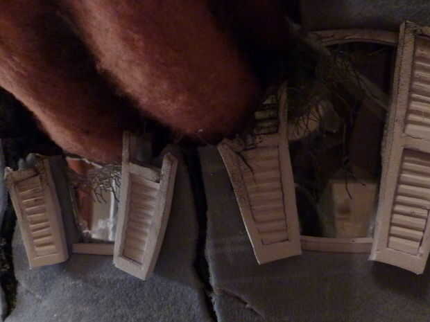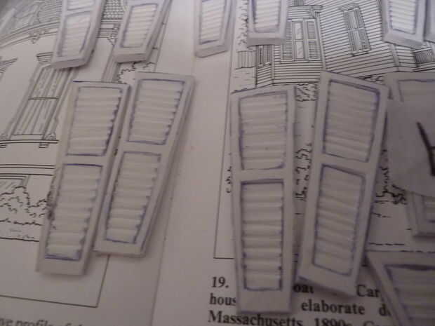 -Ajuste de la casa, persianas, puertas, pasos y arbustos cortan de goma hoja y pintada a mano