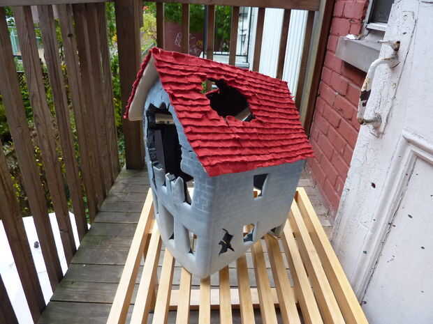 -Bocinas, casa, pájaro y garras tallada de Ethafoam