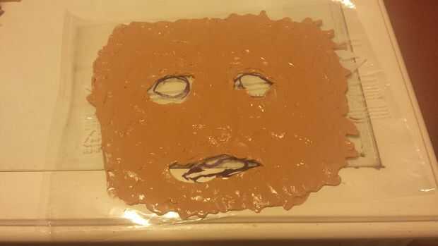 Lege einen Frischaltebeutel auf den Tisch und befeuchtet ihn mit Spülmittelwasser (damit es später besser Ablösung ist) del hombre. Dann les hombre großzügig das braune Silikon en der gewünschten forma auf die Folie. MIT einem nassen dedo (damit das Silikon nicht am klebt de dedo) les die de hombre masa así, dass eine 2-3mm dicke Schicht entsteht.