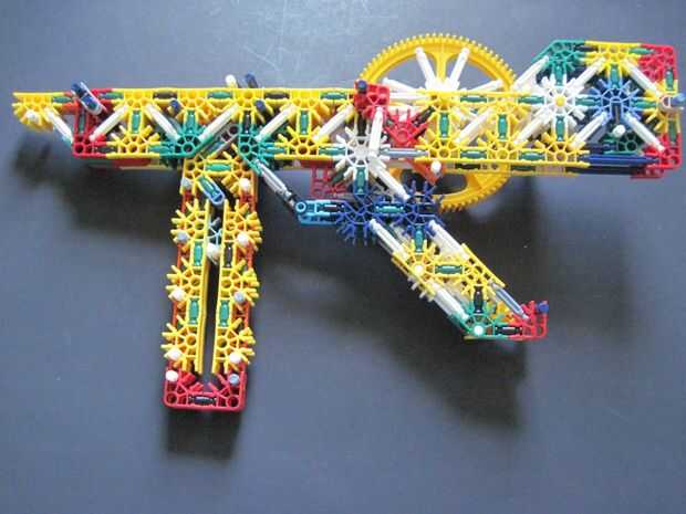 es la Masterdude automática sub-ametralladora, una versión completamente automática de mi MSMG. Después de muchos intentos finalmente he creado un método práctico de completamente automático fuego. Funciona al hacer que el disparo dejó el rayo ir y tener un mecanismo dilatorio (como el reloj de abuelo en mi K'nex) que enlentece el habla a una tasa en la cual al cortarla ir (sin demora mech que las bandas ir tan rápido que la munición no tiene tiempo suficiente para alimentar el mech antes de la siguiente banda). ¿Uno de los resultados del mech de la demora es que crea un ruido y las vibraciones blowback-como (una tal vez algo bueno? Más realista).