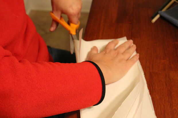Tiempo ahorro tip: para cortar fácilmente múltiples pedazos de pergamino sin medir tedioso, hacer una Junta de liquidación. Utilizar un material fino, rígido, como cartón sólido, metal de hoja fino incluso. Corte una dimensión a la longitud deseada, con la otra al menos la mitad como tu rollo. A continuación, sólo viento el papel alrededor de ese núcleo, haciendo un pliegue agudo en cada vuelta. Después de recibir 5 o 6 capas de la herida, use un cuchillo afilado en cada pliegue, dos cortes pueden conseguir hojas grandes una docena. Recorte a tamaño individual, apile cuidadosamente las cosas resbaladizas, coloque una regla rígida a lo largo de su línea de corte deseada y uso un cuchillo muy afilado o un cortador de arte rotatorio para cortar a través de la pila entera.