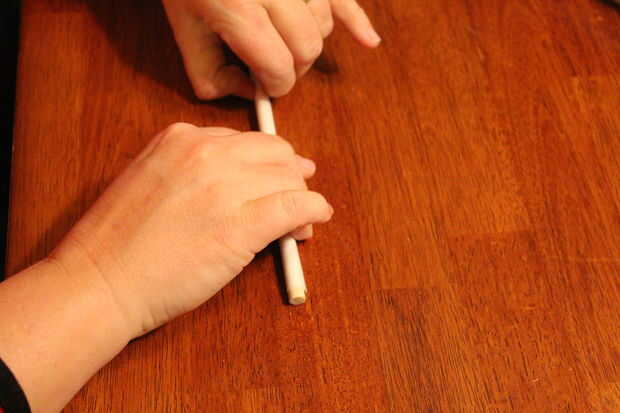 Rollo de cada tubo de pergamino apretado contra el pasador. Proceder al siguiente paso para cada agujero para ser alineado. Repita estos pasos hasta que tengas todos los agujeros alineados. Tenga en cuenta que esto podría ser más fácil si usted vive en Washington, Oregon o Colorado:).