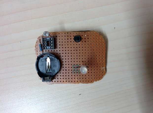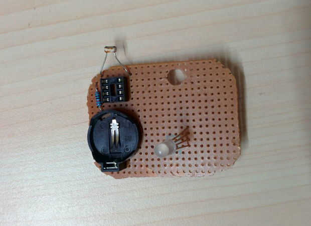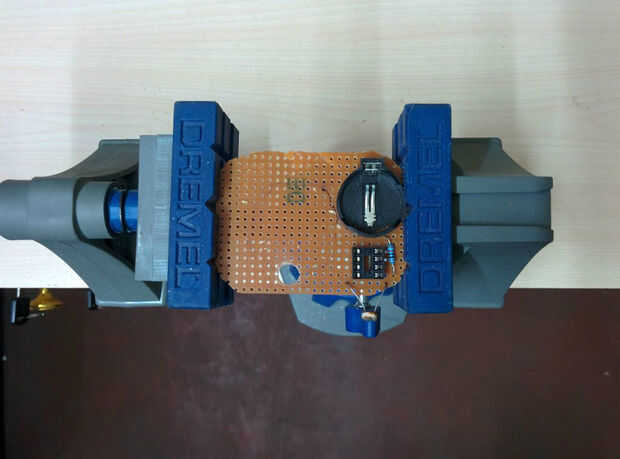 Nota: Me olvidé de esta etapa, así que el agujero después de colocar el soporte de la célula. Cuando se realiza este proyecto, perfore el orificio antes de soldar los componentes a la tarjeta.