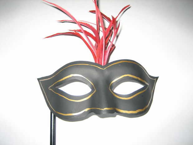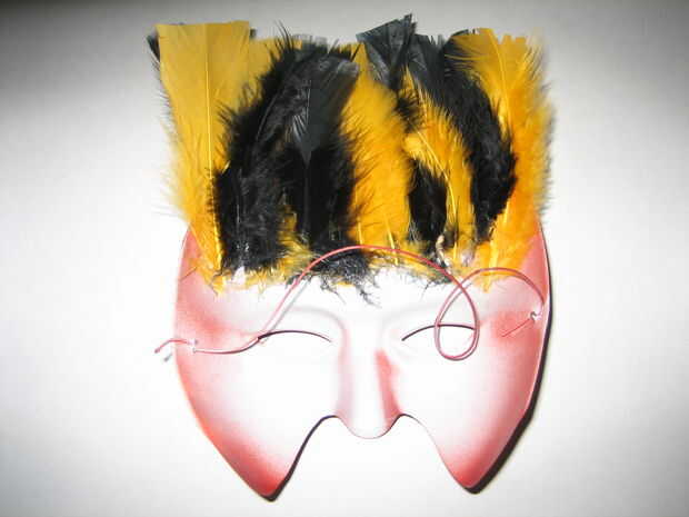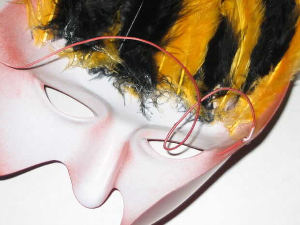 Inicialmente teníamos la idea de agregar un borde de oro alrededor de la máscara femenina con un marcador de oro, esto fue probado en la máscara de la prueba y estaba bastante sucio, por lo tanto, no aplican la máscara final.