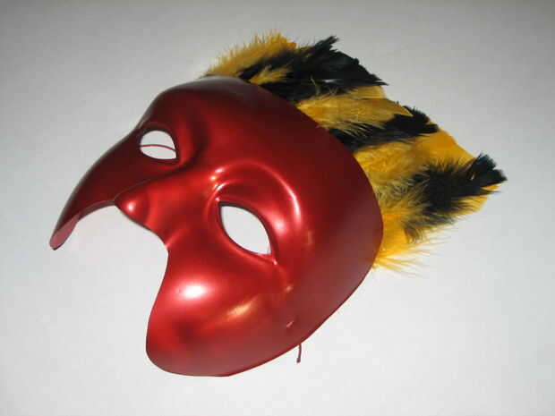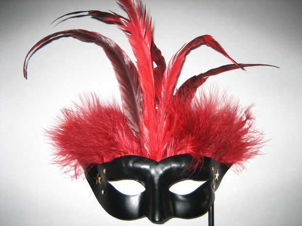 Esta es la primera de unas máscaras que he hecho.Paso 1: fuentes deLo que se necesita:papel usé una filigrana rojo y negro y negro con textura papel de filigranamod podgecepillo de pintura5 penacho de plumas de avestruz en colores multi 1 blanco, 2 n