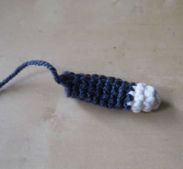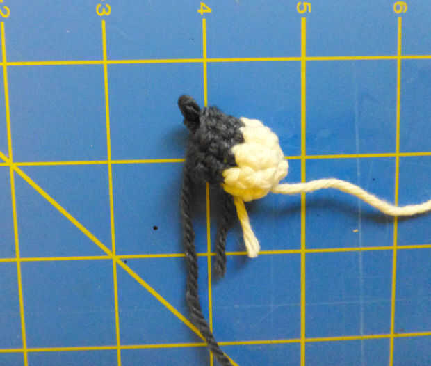 Rnd5-12: sc SC, - 8st(s) la materia. Fije apagado. Deje la cola.