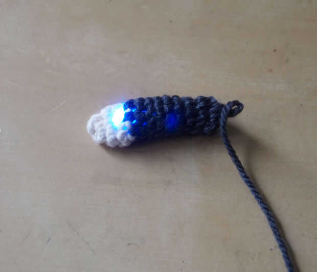 * Nota: Si desea añadir la luz biótica, para uno de los brazos en Rnd5, ch2 y omitir las dos primeras sc, sc continuar en sc a partir de la próxima puntada, no cosas todavía.